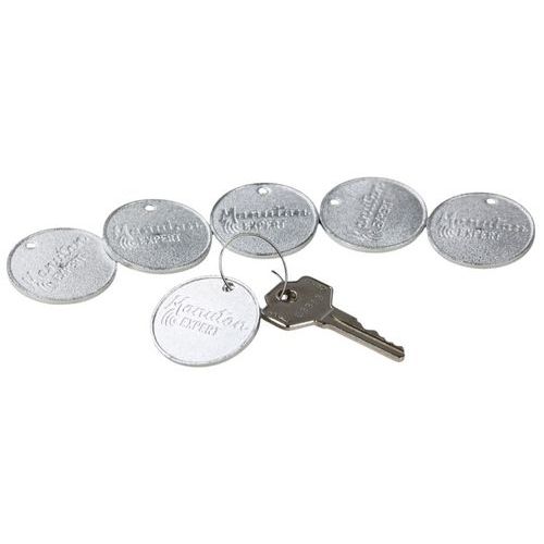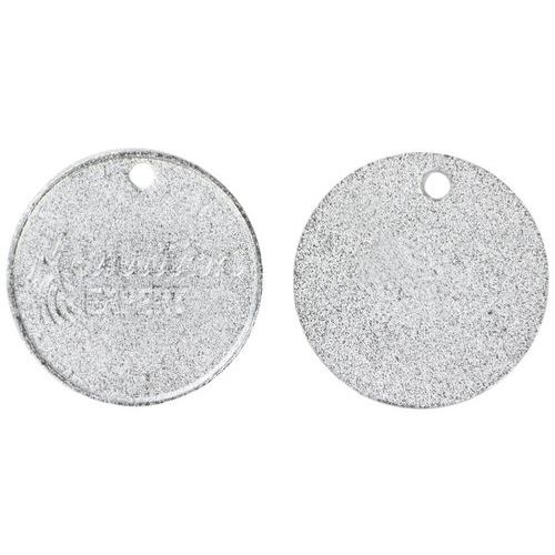 - Unummererte polletter med hull, for enkel festing i ring eller kjede.
