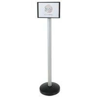 | Varenavn | Informasjonsskilt på fot A4, Bruk: Lager Tertiær, Farge: Grå, Modell: Stolpe på sokkel med plate i A4 |