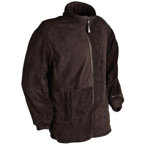 Løs fleecejakke med 2 lommer og strikkede mansjetter.
