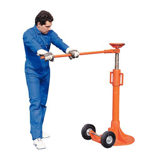 - Sperremekanisme holder jekken på plass. Enkel og rask manøvrering. Hode med svingmekanisme som tilpasser seg etter lasten. Sklisikker overflate gjør den svært stabil. To halvmassive dekk gjør den flyttbar.