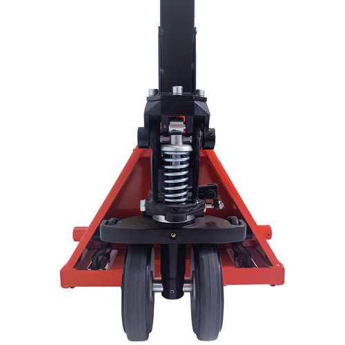 Boggiutførelsen gir god stabilitet og gjør den enkel å manøvrere, selv på ujevne underlag som ramper, lasteplan og ujevne gulv.