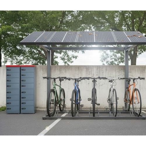 JiWaCharge ladeskap for sykkelbatterier er et CE‑merket, robust skap med 4 eller 8 rom, utviklet for sikker utendørs oppbevaring og lading av elsykkelbatterier.
