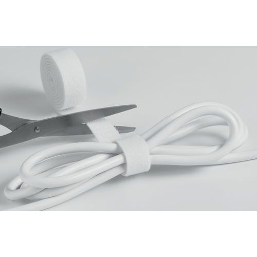 Kabelsamler av borrelåsbånd som klippes i ønsket lengde.
