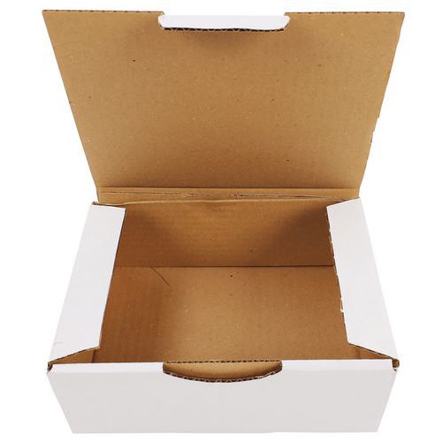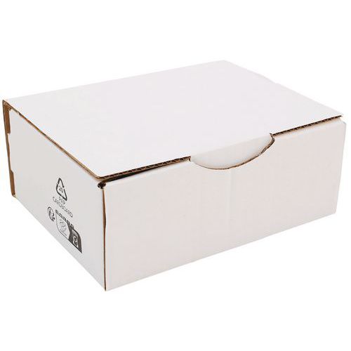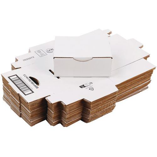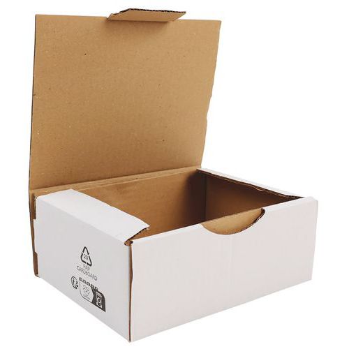 Speedbox er en prisgunstig fraktkasse med mange bruksområder. Lagd av hvit enkelwell av 100 % resirkulert materiale. Takket være kassens klaffer er den rask og enkel å montere. Leveres umontert og flatpakket á 50 stk. 50 stk./pkn. 100 % biologisk nedbrytbare.