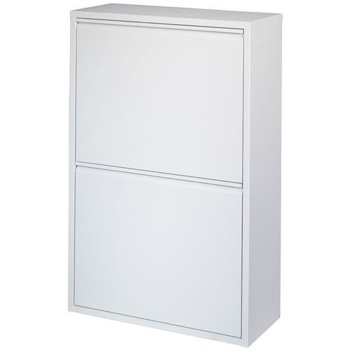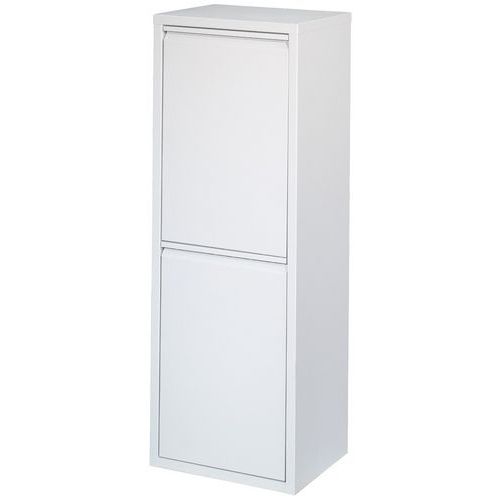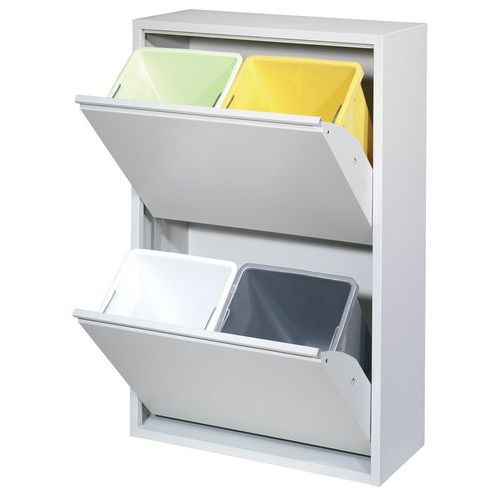 Praktiske skap for kildesortering der vipplokkene åpnes samtidig – med et minimalistisk design som passer i alle typer miljøer.