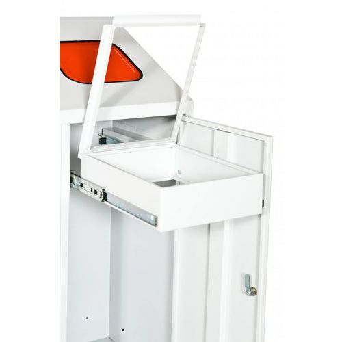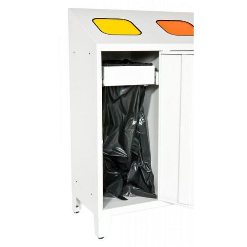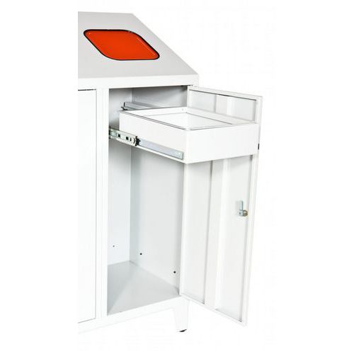 | Varenavn | Kildesorteringsskap med 3 stasjoner, Volum: 125 L, Åpning: Sving, Materiale: Metall, Søppelkasse |