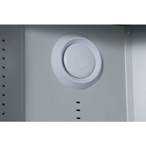 Ventilasjonen skjer ved hjelp av skiveventiler øverst og nederst i skapets venstre innerhjørne, og ventilene er forbundet med en innebygd vertikal ventilasjonskanal (Ø 105 mm).