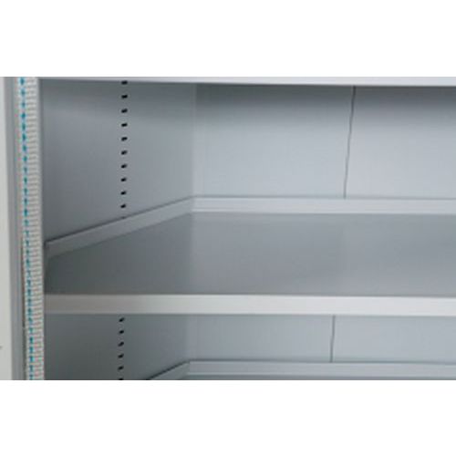 Alle hyllene har ombukkede kanter for å hindre søl, og oppsamlingsvolumet per hylle og i bunnen av skapet er 7 liter per hylle på artikkelnummer 46610/46611 og 9 liter per hylle på 59307.