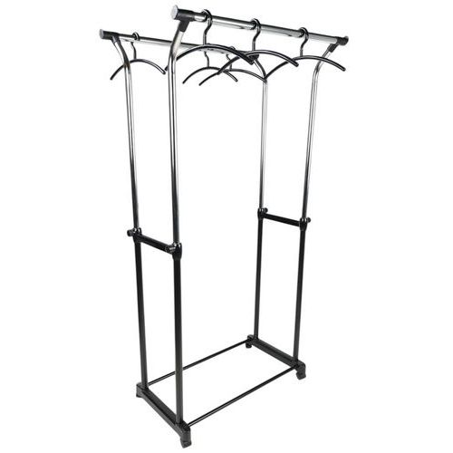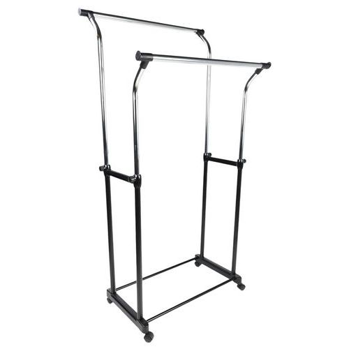 - Meget solid mobil klesstativ på svingbare hjul med 2 hengeseksjoner.