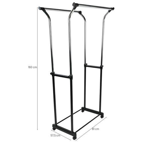 Dobbelt klesstativ, Høyde: 160 cm, Bredde: 81 cm, Farge: Svart/grå, Lengde: 57.5 cm, Materiale: Metall, plast