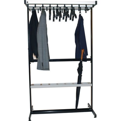 | Varenavn | Klesstativ Pro-line med dobbel tilgang, 38 kroker, Høyde: 167.5 cm, Bredde: 985 mm, Farge: Svart/grå |