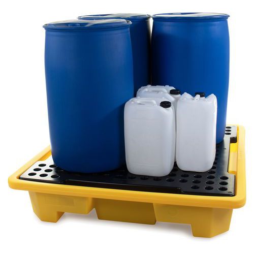 | Varenavn | Koblingsbart oppsamlingskar, 4 fat, Retensjonskapasitet: 249 L, Farge: Svart/gul, Kapasitet (antall fat): 4 |