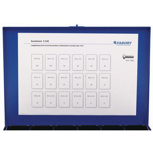 | Varenavn | Koffert med hule sekskantskruer med runde hoder, Antall deler: 582 |