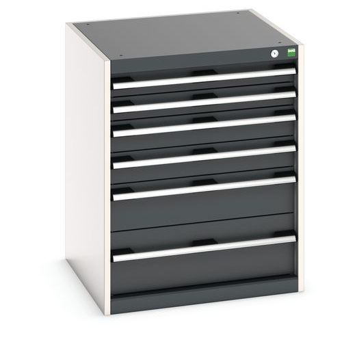 Svært robust skuffeskap av høy kvalitet. Uttrekkbare, fullt tilgjengelige skuffer. Selvlukkende skinner med sikkerhetslåser forhindrer utilsiktet åpning. Skuffehåndtak for plass til etiketter. Skuffelås inkludert. Laget i UK Maksimal last (kg) : 1500
