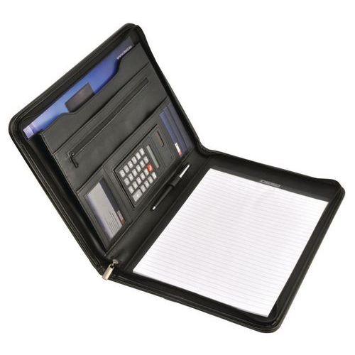 | Varenavn | Konferansemappe med innfellbare håndtak, Materiale: PVC, Farge: Svart, Bredde: 28.5 cm, Høyde: 35.5 cm |