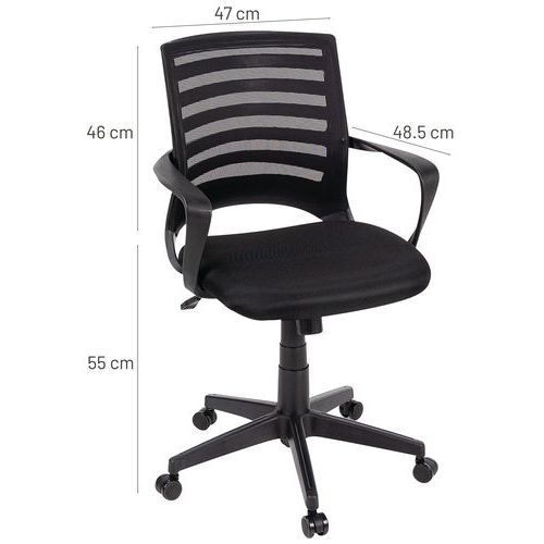 | Varenavn | Kontorstol Ella, Armlener: ja, Type fot: Hjul, Sete, materiale: Stoff, Nakkestøtte: nei |