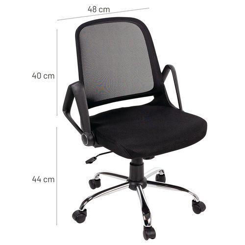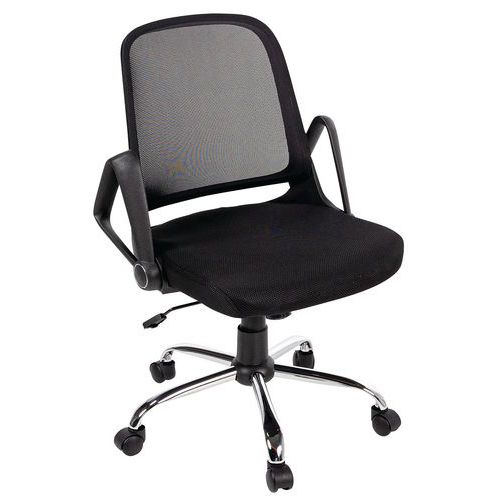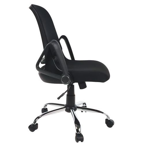 | Varenavn | Kontorstol Prøv, Armlener: ja, Type fot: Hjul, Sete, materiale: Stoff, Nakkestøtte: nei |