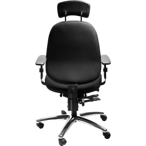 | Varenavn | Kontorstol Ronna svart, Armlener: ja, Type fot: Hjul, Sete, materiale: Stoff, Nakkestøtte: ja, Sete |