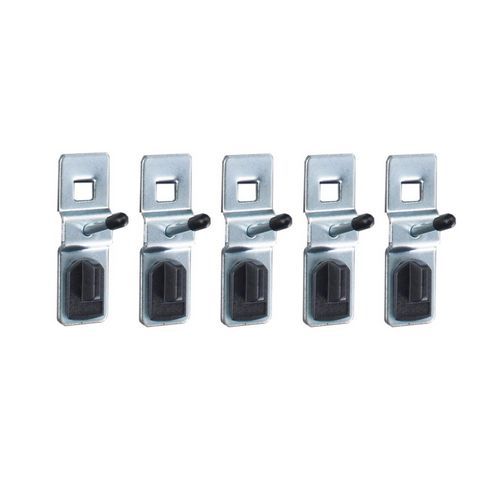 Vinklet panel for opphenging av verktøy. Plastender for bedre sikkerhet. Robust modell med 6 mm tykkelse. Sikkerhetsklips av plast gjør det enkelt å feste støtten.