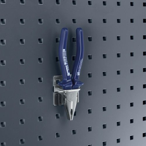 Lukket henger for tenger. Robust modell med 6 mm tykkelse. Sikkerhetsklips av plast gjør det enkelt å feste støtten. Produsert i Storbritannia Garanti (år) : 3 år