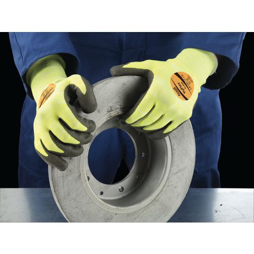 Industrihansker som tåler varme, med fargekoder for korrekt bruk