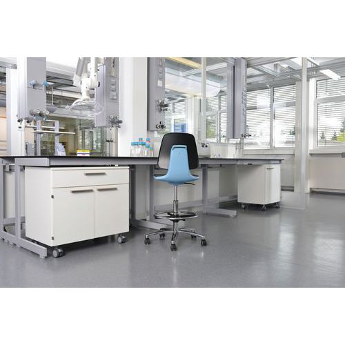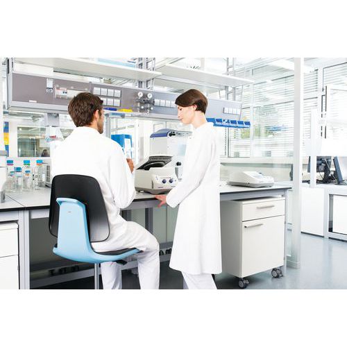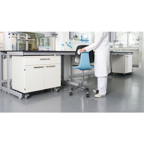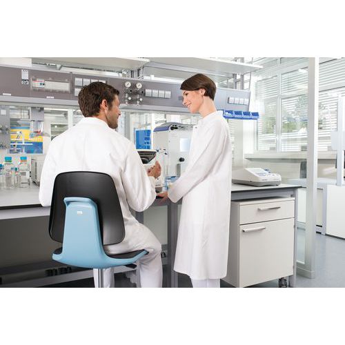 Verkstedstolen er egnet for renrom. Nyskapende ergonomiske funksjoner: Justerer seg etter alle kroppens bevegelser. 3D-Flex-funksjoner på setekanten og i seteryggen Enkel å bruke takket være integrerte håndtak. Vaskbart og tåler desinfeksjonsmidler. Perfekt til laboratoriet