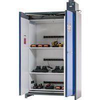 Asecos ION-PRO-90 er et ladekabinett for litiumionbatterier med robust konstruksjon og lang levetid, takket være et høykvalitets, ripebestandig ytre med pulverlakkert struktur.