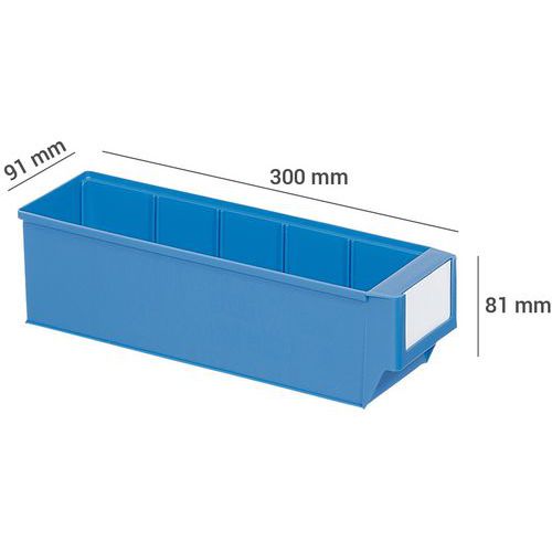 Lagerkasse 300 mm, Volum: 1.5 L, Totalhøyde: 81 mm, Totalbredde: 91 mm, Totallengde: 300 mm, Farge: Blå
