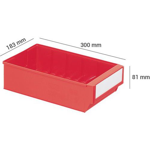 Lagerkasse 300 mm, Volum: 3.3 L, Totalhøyde: 81 mm, Totalbredde: 183 mm, Totallengde: 300 mm, Farge: Rød