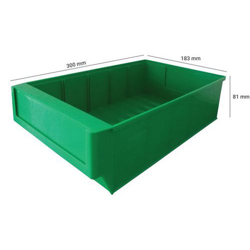 Lagerkasse 300 mm, Volum: 3.3 L, Totalhøyde: 81 mm, Totalbredde: 183 mm, Totallengde: 300 mm, Farge: Grønn