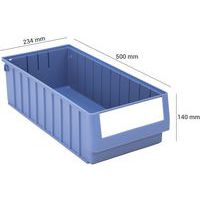 Lagerkasse RK 500 mm, Volum: 12.6 L, Totalhøyde: 140 mm, Totalbredde: 234 mm, Totallengde: 500 mm, Farge: Blå Lagerkasse RK 500 mm, Volum: 12.6 L, Totalhøyde: 140 mm, Totalbredde: 234 mm, Totallengde: 500 mm, Farge: Blå