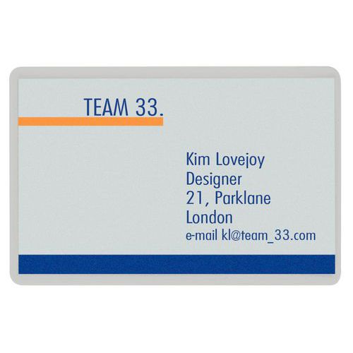 | Varenavn | Laminat visittkort 60x90 125my, 100 stk – Leitz, Tykkelse: 125 µm, Format: 66 x 100 mm, Bredde: 60 mm |
