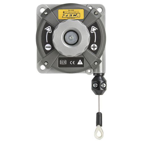 Zeca Balansblokk med koffert i støpt aluminium. Kontinuerlig kapasitetsjustering fra største verdi til minste verdi. Kabellengden kan enkelt justeres etter ethvert behov. Fire opphengspunkter og tre festepunkter.