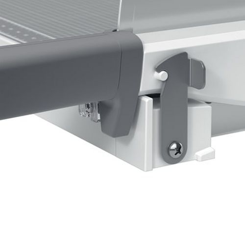 - Den manuelle papirholderen holder papiret sikkert på plass, og det ergonomiske håndtaket gir komfortabel bruk.