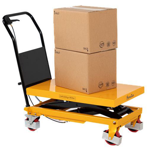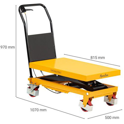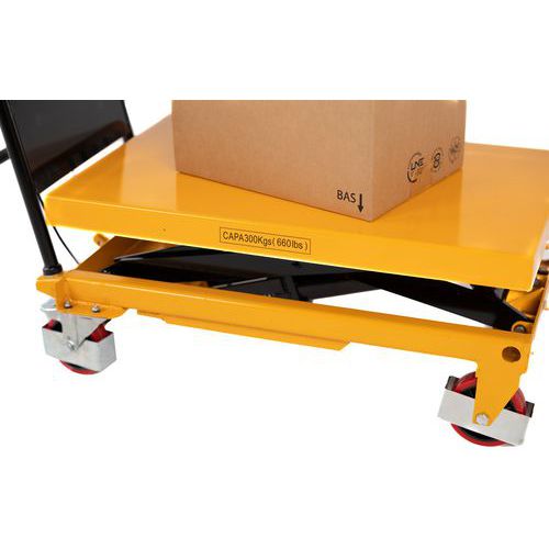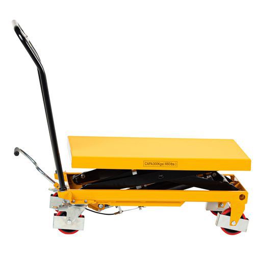 | Varenavn | Løftevogn 300 kg, Kapasitet: 300 kg, Plate, maksimal høyde: 895 mm, Antall pedaltråkk for maksimal høyde: 38 |
