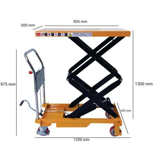 Løftevogn 350 kg, Kapasitet: 350 kg, Plate, maksimal høyde: 1300 mm, Plate, minimal høyde: 350 mm
