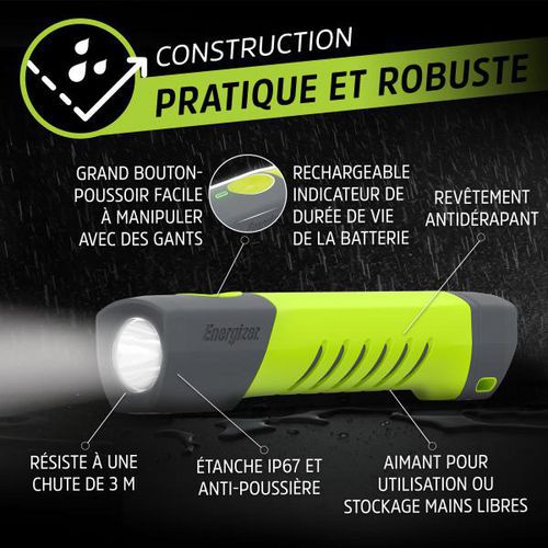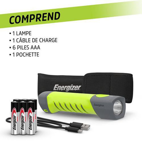 Timer med batterilevetid: Denne pålitelige og holdbare Energizer-lommelykten kan brenne i opptil 20 timer i lav modus* *Med litiumionbatteri.