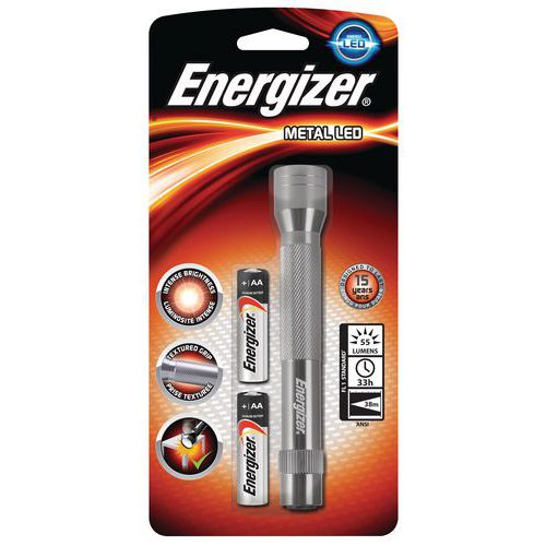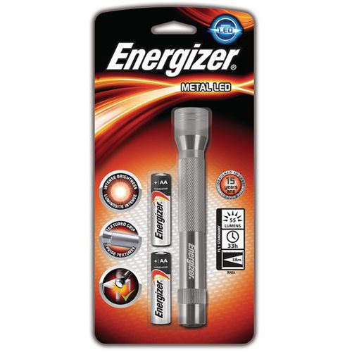 | Varenavn | Lommelykt Metal Led 2AA – 55 lm – Energizer, Lysfluks: 60 lm, Levetid: 41 time, Spennvidde: 38 m |