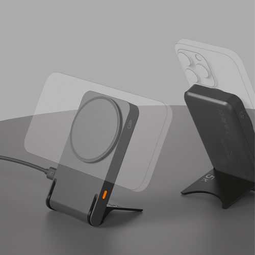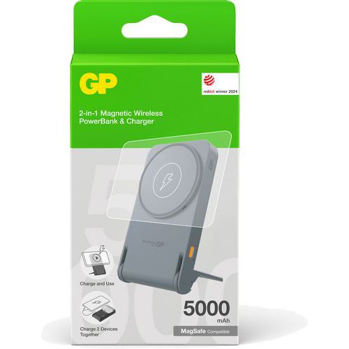 - GP Magnetic Safe er en kompakt 2-i-1 powerbank med trådløs lading og sammenleggbart stativ.