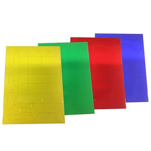 En 1,7 mm tykk magnetisk plate med symboler av rektangler, kvadrater, sirkler, trekanter og piler. Tilbehør til Planleggingstavle 5-ukersplan og Årsplanleggingstavle, uker.