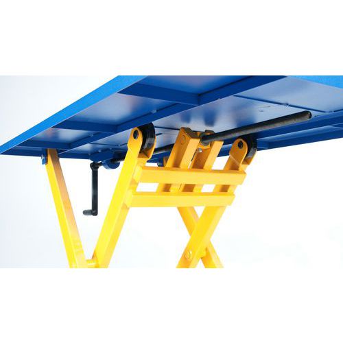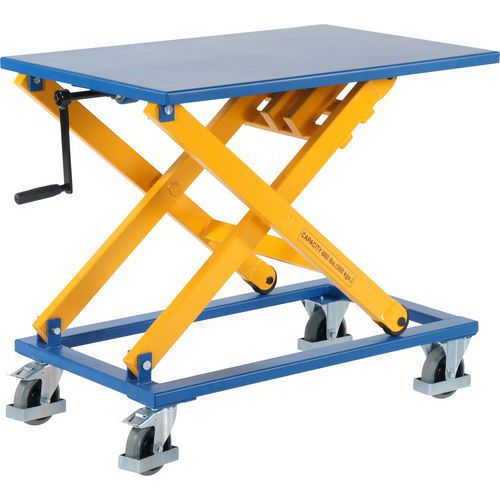 Varenavn Manuell løftevogn med sveiv, 300 kg, Kapasitet: 300 kg, Plate, maksimal høyde: 1050 mm