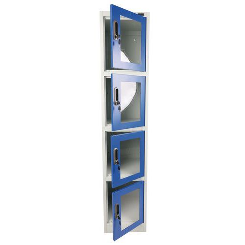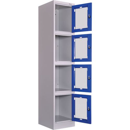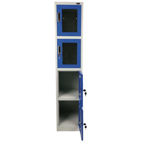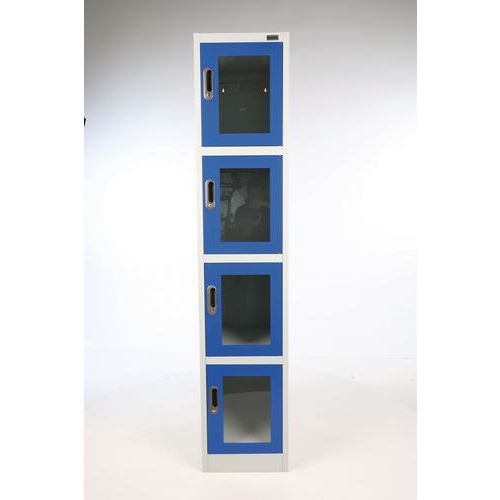 | Varenavn | Metallskap med 4 oppbevaringsrom og gjennomsiktig dør, Type skap: Med rom, Materiale: Stål |
