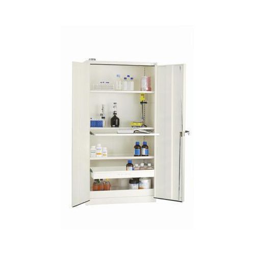 Kraftig låsbart skap for væsker. Innredes etter behov med bunntrau, hylletrau, hyller og uttrekksenheter.
