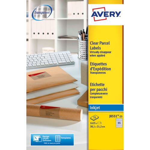 | Varenavn | Mini gjennomsiktig etikett 38,1 x 21,2 mm, Antall etiketter/ark: 65, Antall etiketter: 1625, Etikett |