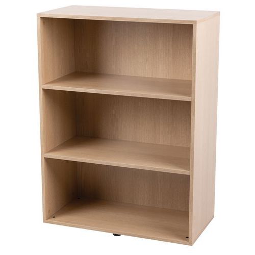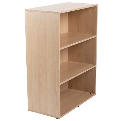 Middels høy bokhylle laget av 18 mm melamin med 1 mm ABS-kanter.