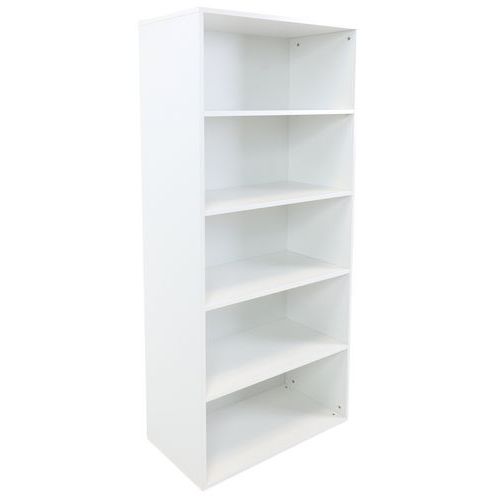 Middels høy bokhylle laget av 18 mm melamin med 1 mm ABS-kanter.