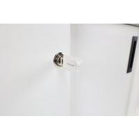 Skap med skyvedører laget av 18 mm melamin med 1 mm kanter. 25 mm hylle som tåler en belastning på opptil 32 kg. Justerbare plastføtter for enkel nivåjustering av skapet. 60 mm metallprofilhåndtak. Utstyrt med nøkkellås.