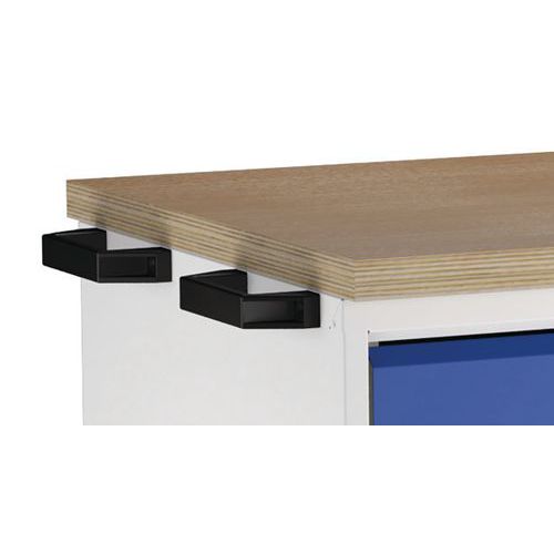 Stabil, låsbar mobil arbeidsbenk med en solid benkeplate i kryssfiner.