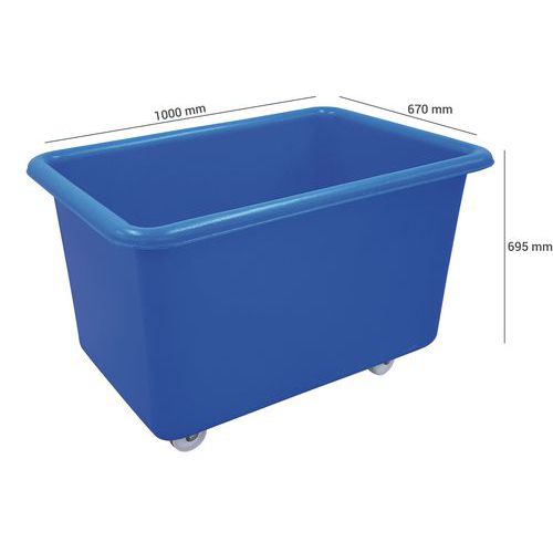 | Varenavn | Mobil beholder til tung last – lengde 1000 mm – 320 I, Volum: 320 L, Totalhøyde: 695 mm, Totalbredde: 670 mm |