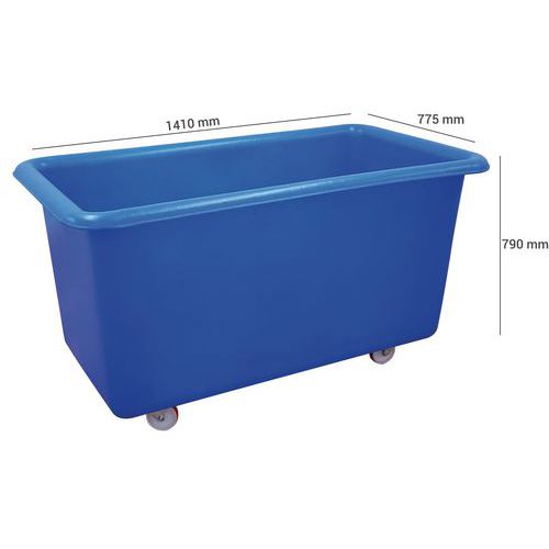 | Varenavn | Mobil beholder til tung last – lengde 1410 mm – 455 I, Volum: 455 L, Totalhøyde: 790 mm, Totalbredde: 775 mm |